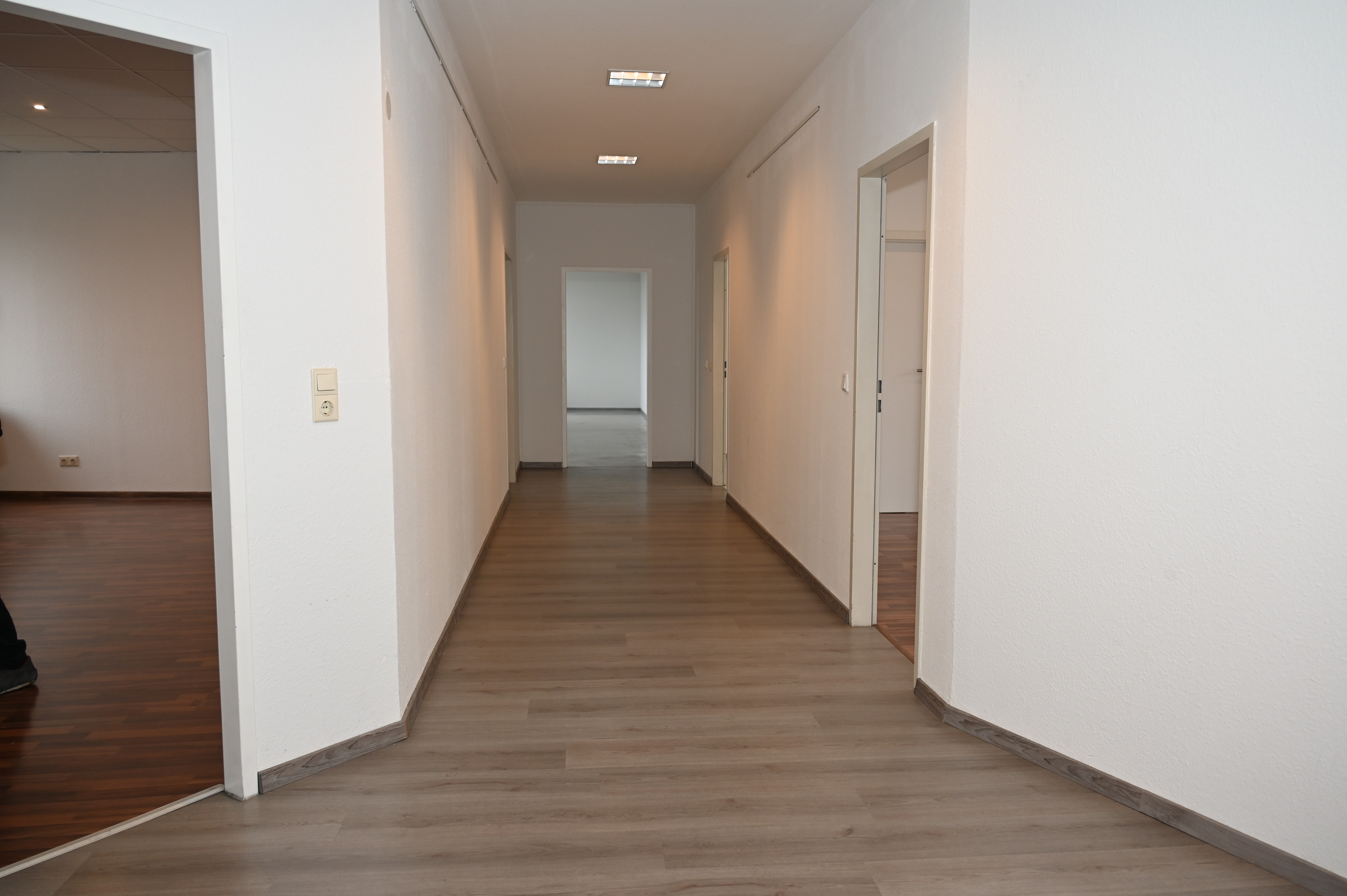 Beim Betreten der Büroetage gelangt man zunächst in einen großzügigen Empfangsbereich, welcher Platz für einen Empfangstresen oder Wartebereich bietet. Von hier aus sind die vier weitere Zimmer erreichbar, welche vielfältige Nutzungsmöglichkeiten bieten und auch noch einmal geteilt werden könnten. Ob als Büro, Besprechungsraum oder Behandlungszimmer – die Räumlichkeiten lassen sich individuell gestalten und den eigenen Bedürfnissen anpassen. Die großen Fenster sorgen für eine angenehme Arbeitsatmosphäre und lassen ausreichend Tageslicht in die Räume.
